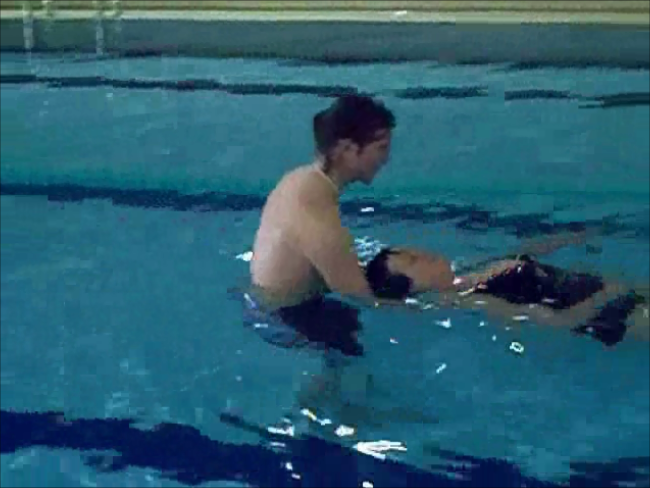 Ve vodě je toho víc. Cvičíme s žížalkami i bez, pochodujeme a plaveme. Teda učíme je plavat a hlavně ztratit strach z vody. A jsme u psychologie.
